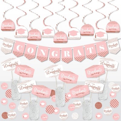 Big Dot of Happiness Rose Gold Grad - Graduation Party Supplies Decoration Kit - Decor Galore Party Pack - 51 Pieces