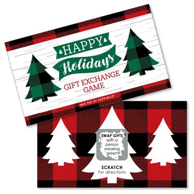 Big Dot of Happiness Holiday Plaid Trees - Buffalo Plaid Christmas Party Gift Exchange Game Scratch Off Cards - 22 Count