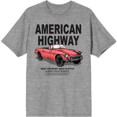 Car Fanatic Red Vintage Car American Highway Men's Gray Graphic Tee