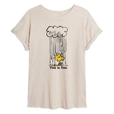 Women's - Peanuts - Woodstock This Is Fine Oversized Graphic T-Shirt