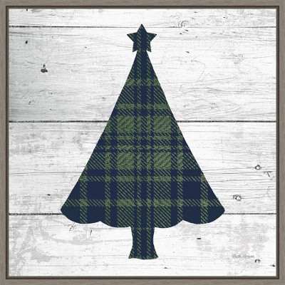 16" x 16" Nordic Holiday XVI Christmas Tree by Beth Grove Framed Canvas Wall Art Plaid Navy/Green - Amanti Art