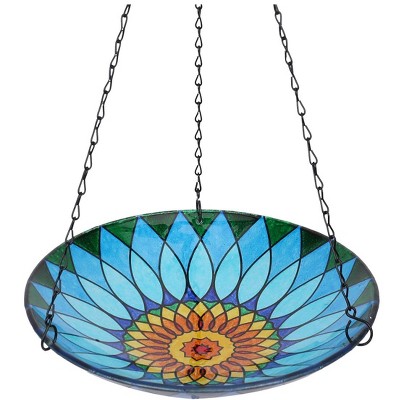 Etokfoks 11 Inch Hanging Glass Bird Bath for Outdoor Use Bright Kaleidoscope Design Bowl Bird Feeder for Garden Yard Patio Decor 1 Piece