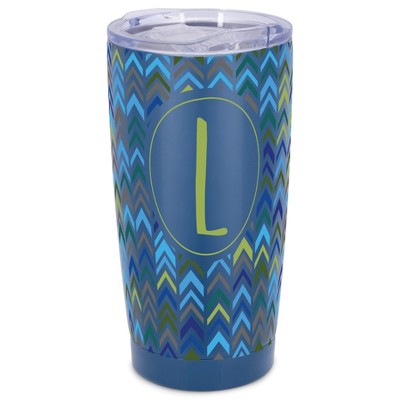 Elanze Designs 20 oz Stainless Steel On the Go Insulated Travel Tumbler With Push Top Lid, Mama Pink & Blue Floral White