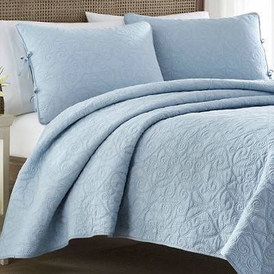 VCNY Queen Harmony Reversible Paisley Quilt Set Blue : Full/Queen Size, Microfiber, Hypoallergenic, 5-Piece Bedding Set