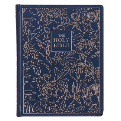 KJV Holy Bible, Large Print Note-Taking Bible, Faux Leather Hardcover - King James Version, Navy W/Gold Floral