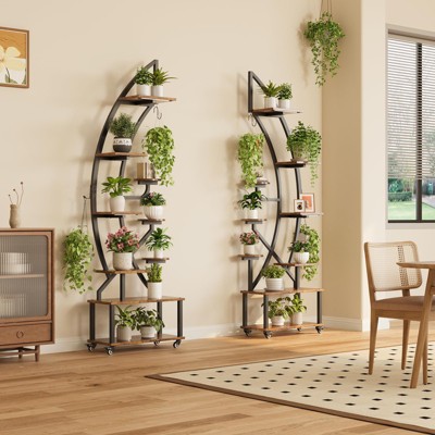 Slickblue 1 or 2pcs Half-Moon Plant Stand, 6-Layer Multi-Tier Rack, Flower Pot Shelf, Modern, Black, 19.8x11.8x64.96in