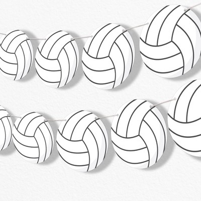 Big Dot of Happiness Volleyball Garland Banner, Sports Birthday Party or Baby Shower Decorations Banner, 30 Feet of Cord, 15 Double-Sided White