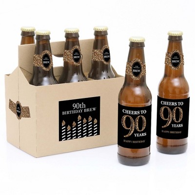 Big Dot of Happiness Adult 90th Birthday - Gold - Birthday Party Decorations for Women and Men - 6 Beer Bottle Label Stickers and 1 Carrier