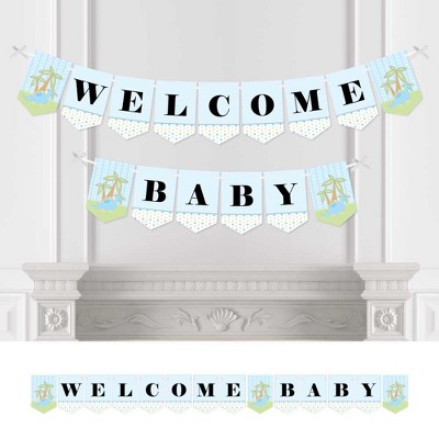 Big Dot of Happiness Baby Boy Dinosaur - Baby Shower Bunting Banner - Blue Party Decorations - Welcome Baby