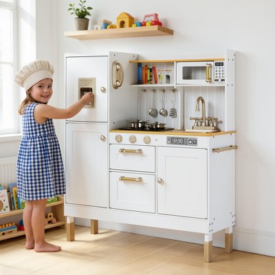 Play Kitchen Wooden Playset for Toddlers with Cookware Accessories
