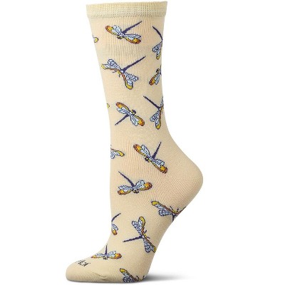 Memoi Women's Dragonflies Rayon from Bamboo Crew Socks Sunshine 9-11