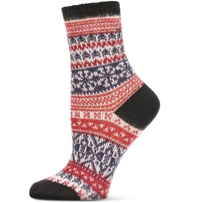 Memoi Women's 2 Pair Ribbed Flat Knit Wool Blend Crew Socks