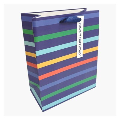 Bows And Sparkles Large Square Striped Shark Birthday Gift Bag with Tag Navy/Blue