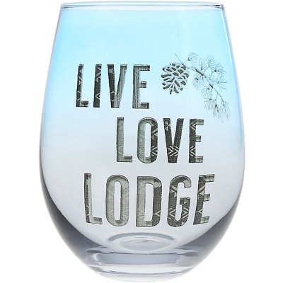 Pavilion Gift Company - Live Love Lodge - 18 oz Stemless Wine Glass - Drinkware