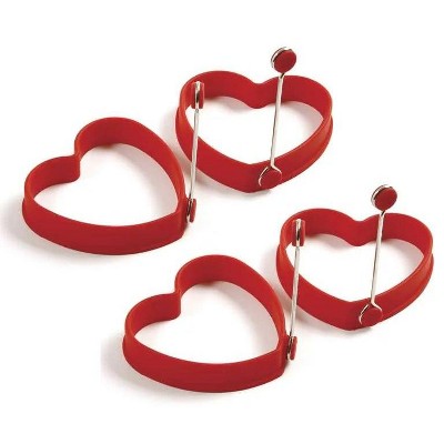 Norpro Nonstick Silicone Heart Shaped Pancake and Egg Rings with Handles, Set of 4, Red