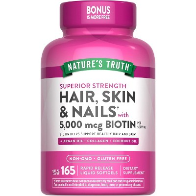 Nature’s Truth Hair, Skin and Nails Softgels with 5000 mcg Biotin for Beauty Nutritional Support, 165 Ct