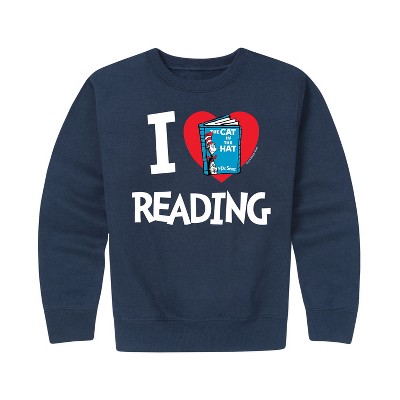Boys' - Dr. Seuss - The Cat In The Hat Book Cover I Love Reading Graphic Long Sleeve Fleece Sweatshirt