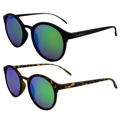 Islander Eyes Maldives Polarized Sunglasses for Men and Women 2 Pairs Oversized Round Black & Tortoise Frames w/Green Mirror Lenses