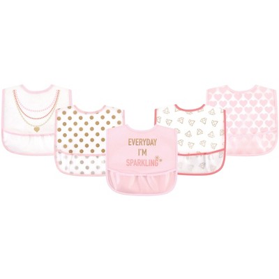 Little Treasure Baby Girl Waterproof PEVA Bibs 5pk, Sparkling, One Size
