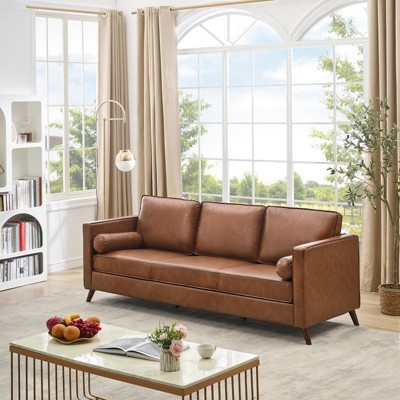 - brown faux leather sofa
