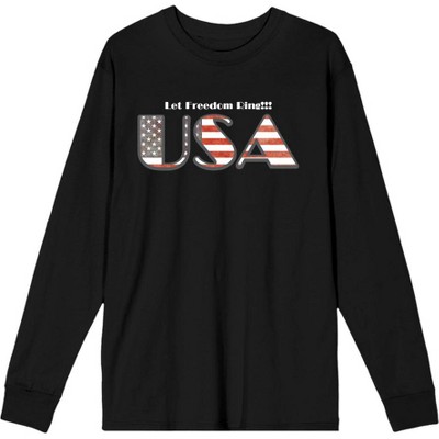 American USA Flag Letters Adult Crew Neck Long Sleeve Tee