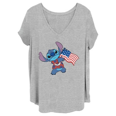 Junior's Women Lilo & Stitch Tropical American Flag T-Shirt