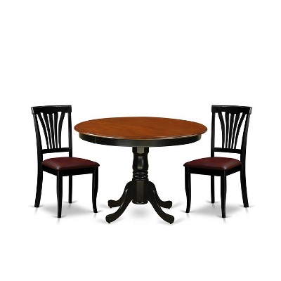 HomeStock 3-Piece Round Black and Cherry Finish Solid Wood Top Dining Table with 2 Chairs