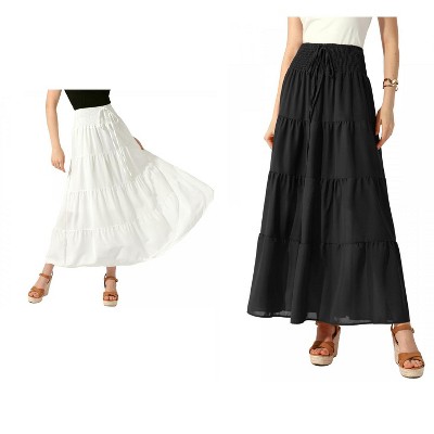Allegra K Women's Boho Summer Smocked Elastic Waist Tiered A-Line Beach Maxi Skirt 2 Packs