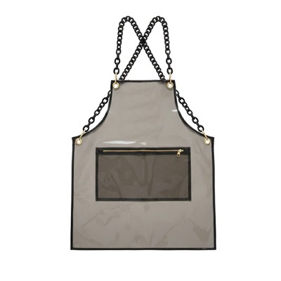 Alilang Adjustable Cross Back Transparent Utility Apron with Chain Strap Detail and Zippered Front Pocket - Black