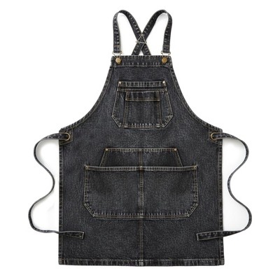 Alilang Adjustable Cross Back Denim Utility Apron with Multi Pocket Storage and Reinforced Hardware Design - Black
