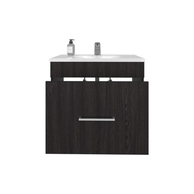 SEVOBAL Bathroom Vanities 23.2 Inch Floating Double Door Vanities with Resin Sink and Two Shelves for Bathroom Storage, Black, 28.74"*23.23"*12.99"