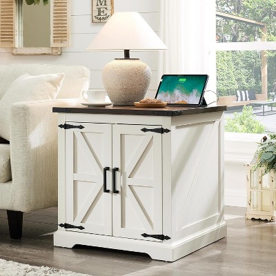 VASAGLE Side Table with Charging Station, Round End Table With Fabric Storage Box, for Living Room with Power Outlets USB Ports