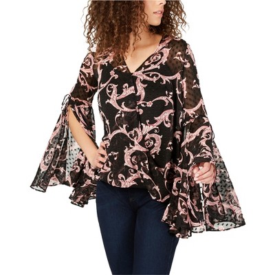 I.N.C International Concepts Womens Floral Bell-Sleeve Pullover Blouse