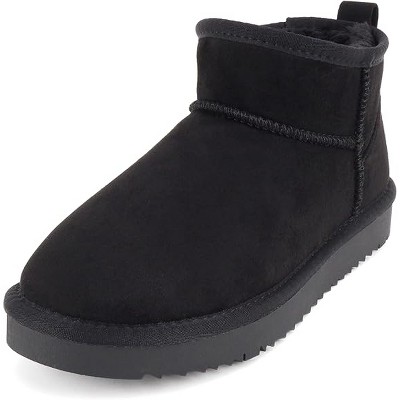 Womens Winter Boots Black Suede Insulated Zipper Snow Boots