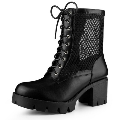 BLISSFUL STEP Women's Round Toe Chunky Heel Lace Up Platform Boots