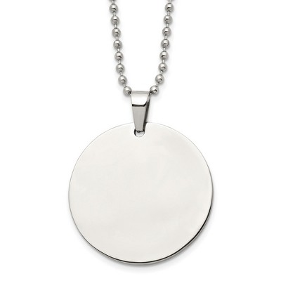Black Bow Jewelry Stainless Steel Reversible 22mm Round Engravable Disc Necklace, 24 In