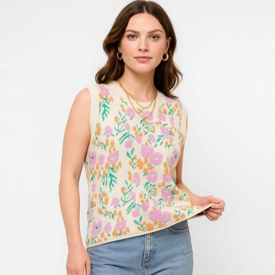 Woman Floral Knit Sleeveless Vest – 40% Acrylic Blend, Casual Fit Cherie Code