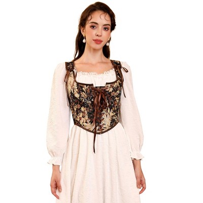 Women's Vintage Floral Corset Lace-Up Fishbone Print Vest Renaissance pirate costume