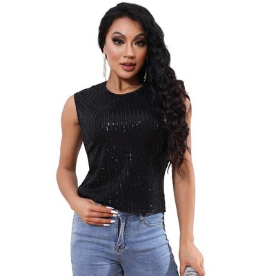 Womens Plus Size Sequin Tank Tops Scoop Neck Sleeveless T-shirts Tops Sexy Sparkle Shimmer Tunic Tops