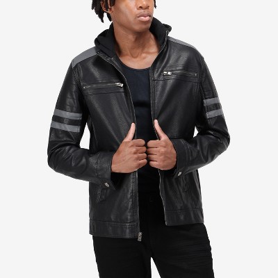 X RAY Mens Motorcycle PU Leather Jacket With Faux Shearing Lining