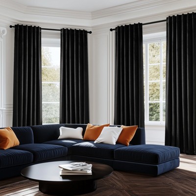 RLF Home NightFall 100% Cotton Rod Pocket Window Curtain set of 2 Panels 100" x 63" Black