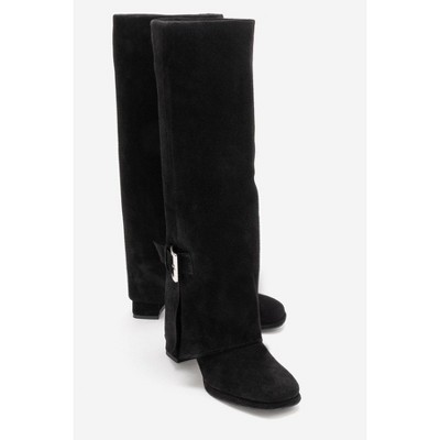 Lume - Black Genuine Leather Block Heel Knee-High Boot (Women) | Forever & Always Shoes