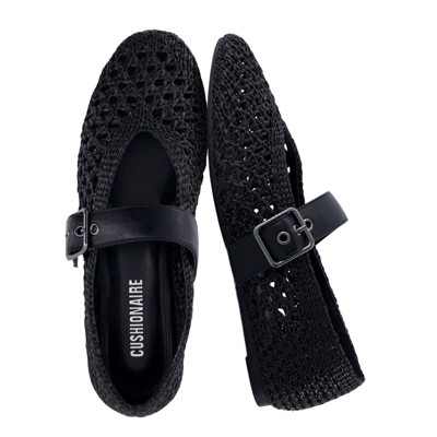 CUSHIONAIRE Gabby Woven Mary Jane Ballet Flats for Women, Comfortable Dressy Flat Shoes with Adjustable Gold-Tone Buckle and Memory Foam Cushioning