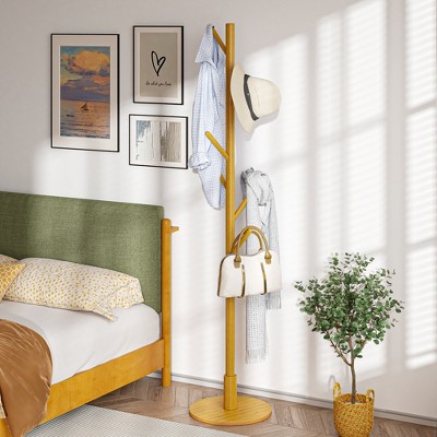 VASAGLE 8 Hooks Solid Wood Coat Rack Wood Hall Tree Coat Rack Stand with Stable Square Base 3 Height Options Office