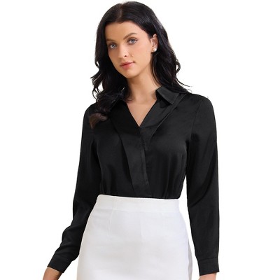 INSPIRE CHIC Women's Long Sleeve V Neck Casual Collared Button Decor Basic Fall Shirts
