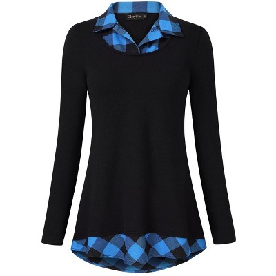 Clearlove Women's Casual Contrast Collar Shirt Long Sleeve Slim Fit Tunics Top