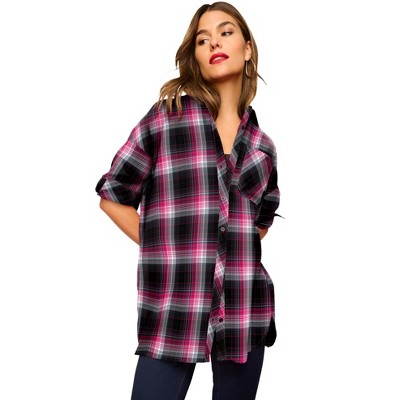 Roaman's Plus Size Kate Short Sleeve Easy Cotton-Blend Button-Front Shirt
