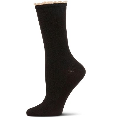 Memoi Women's Flowing Ribbon Back Scalloped Edge Crew Socks