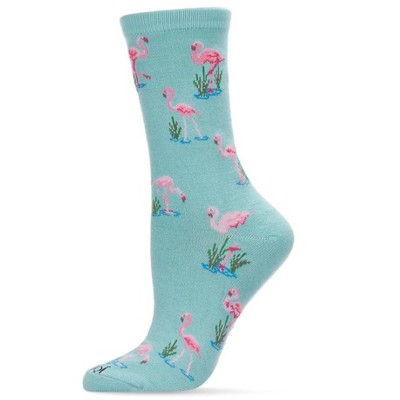Memoi Feathered Frenzy Flamingo Bamboo Blend Crew Novelty Socks