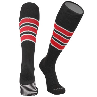 PEAR SOX Striped OTC Baseball, Softball, Football Socks - Black, White, Red (C)